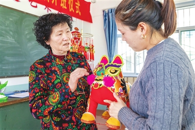 非遗传承人刘海兰老师正在耐心细致地向村民讲解布老虎制作要领。刘海兰说:“这些手工艺品不仅承载着村民的手艺与真情,更寄托着大家对美好生活的期盼。”