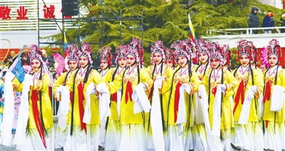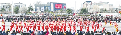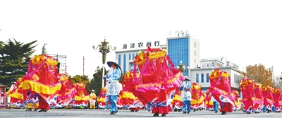 壶关县秧歌表演喜庆热烈,队员们精神抖擞、神采飞扬,奏响了千年古县、厚重壶关的文化强音;