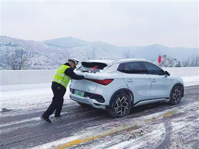 “太感谢你们了!”车主激动不已,对民警连声道谢!临行前,民警向车主提示出行前,一定要提前了解路况,叮嘱车主雪天路滑,减速慢行,安全第一。