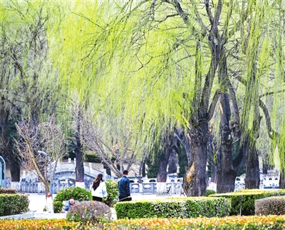 街边的柳树,率先感知到春的气息。细长的柳枝渐渐泛出柔和的绿意,宛如一抹淡淡的青烟萦绕。公园里,那些顽强的草尖,从沉睡一冬的泥土中探出脑袋,怯生生又倔强地宣告着春天的到来。成群的水鸟在晶莹剔透的湖面或随波荡漾、或翩跹起舞,惬意地感受早春气息。坐落于山巅的古寺在早春微光中庄严肃穆,红墙映日、飞檐斗拱,在春日的光影里,更显栩栩如生。街头巷尾,人们褪去厚重的冬衣,换上轻薄的外套,享受着这难得的温暖时光。
