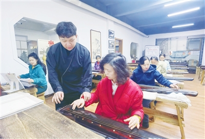 3月16日,市清泉琴馆公益古琴课堂上,教师正在教授学员古琴的弹奏指法。为了弘扬中华优秀传统文化,传承古琴艺术,由市古琴学会主办,市清泉琴馆承办的公益古琴课堂,已持续开展5期,培养学员1000余人,广受好评。