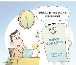 新华社北京3月18日电(记者董瑞丰 李恒)全国爱卫办18日发布《睡眠健康核心信息及释义》,推荐成年人晚上10至11点入睡,早晨6至7点起床,其中老年人可早晨5至6点起床。