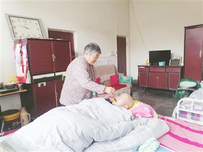3月20日上午10时,走进陈秦香家中,老人正在给丈夫苏有福做康复训练。苏有福虽然卧病在床,生活无法自理,但是在陈秦香的悉心照料下,他穿得干净整洁,面色红润,精神状态很好。