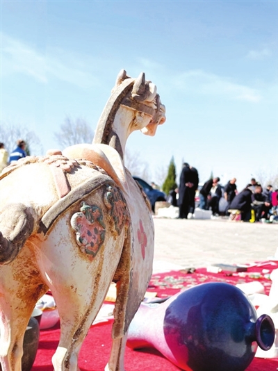 记者走进上党古玩城,古玩艺术品琳琅满目,古籍书画、奇雕异石、钱币古玉、瓷器、民间工艺品等300个文玩珍品地摊一字排开,让人目不暇接,一个个地摊就像一个个百宝箱,等待着每一位寻宝者的发掘。