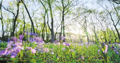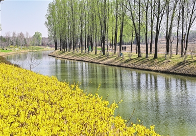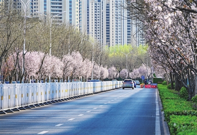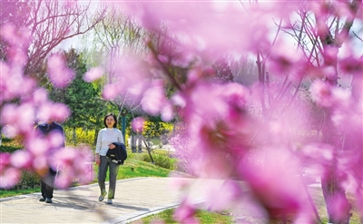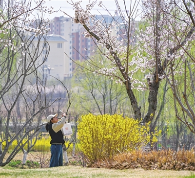太行公园内,白色的玉兰花亭亭玉立,宛如身着白色纱裙的仙子;金黄的迎春花像点点繁星,点亮了公园的每个角落;粉色的山桃花、杏花,将公园装点得五彩斑斓。