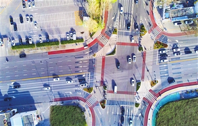 日前,潞州区英雄南路与五针街十字路口设置生态渠化岛,车辆及行人有序通行。今年以来,我市多个十字路口修建了生态渠化岛,通过绿化带、标线和隔离设施,将不同方向的车流、人流进行科学分离,道路通行效率大大提升,市民出行也更加安全快捷。
