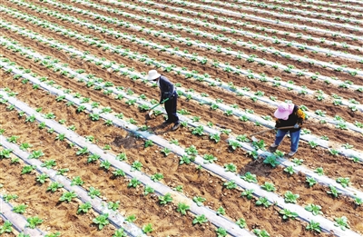 近日,长子县丹朱镇东鲍村村民在田间劳作。近年来,东鲍村依托当地政策扶持与技术指导,从选种到田间管理精细操作,推动蔬菜产业全链条发展,为乡村振兴注入强劲动力。本报记者赵浩 摄