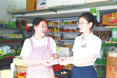 近日,漳泽农商银行营业部组织工作人员走进辖内经营便利店、小吃店等商户,开展“上门零钱兑换”专项走访活动,以“主动上门 精准服务”的方式,解决商户日常经营中的零钱需求,用贴心金融服务为商户经营“减负赋能”。