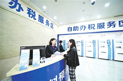 4月14日,市政务服务中心办税服务厅内,工作人员在帮助纳税人快速办理业务。