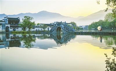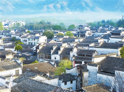 春光明媚,安徽省黄山市黟县宏村白云飘飘、碧水悠悠,乡野风光与徽派建筑相映成趣,吸引游客纷至沓来。 新华社记者 摄