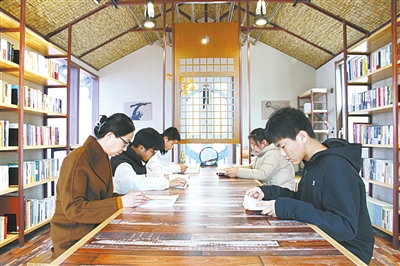 “书屋周边环境优美,加上现代感的设计,这对我们年轻人来说有着很强的吸引力。”今年准备考研的吕宇一边在书架上寻找书籍一边说,“这里各类图书种类齐全,对于写论文有很大帮助,我经常来这里查阅资料。”