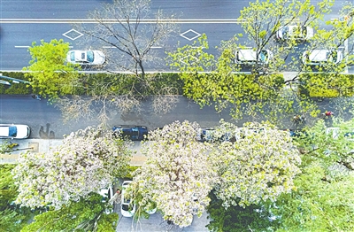4月26日,潞州区潞阳门南路两侧楸树繁花盛开,粉紫色的花朵缀满枝头,宛如一片绚丽的云霞,为城市增添了亮丽的春色。近年来,我市持续推进城市绿化提升,打造生态宜居环境,人民群众获得感、 幸福感不断提升 。 本报记者 司敏 摄