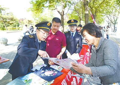 4月25日—5月1日是第23个《职业病防治法》宣传周。4月25日上午,市疾控中心的工作人员在八一广场,向过往群众普及了职业病防治的相关知识。本次宣传周以“关爱劳动者,关注心理健康”为核心主题,旨在进一步传播职业健康知识,提升公众对职业健康的认识。同时,促使用人单位认识到自身在职业病防治中的主体责任,呼吁全社会共同参与,致力于营造出一个让劳动者得以安全、健康工作的良好环境。 本报记者 张海 摄