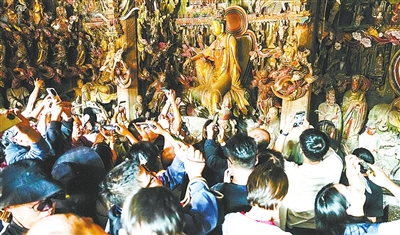 观音堂内,满堂华彩,大小500余尊塑像神态各异,共处一堂,赢得游客啧啧称奇,看古建、品文化,一探“海内悬塑之冠”风采;