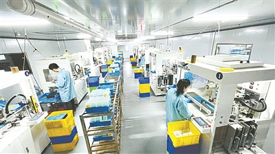 5月6日,长治市鑫荣电子科技有限公司生产车间,工人们在进行产品组装与检测。近年来,该公司不断技术创新,提升手机钢化膜的硬度、透光率及贴合度,致力于为用户带来更优质的使用体验,产品远销印度、巴西、伊朗等国家。