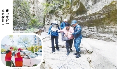 屯留区在老爷山、石泉海等景区景点,启用无人机巡护系统,实时监控人流密度,14支志愿服务队、130余名志愿者筑牢道路交通安全防线。壶关县蓝天救援队骨干力量,在玻璃观景台陡峭路段实施分级防护,以“专业守护”为游客撑起“安心伞”。襄垣县及时雨志愿服务队科学高效行动,出动68人次、15辆车,实现安全隐患动态清零。平顺县超1000余名志愿者在通天峡等景区开展服务,全力保障游客安全。沁县200余名志愿者在景点接待游客1.8万余人次。