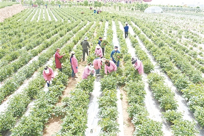近日,在黎瑞农业生态发展有限公司的芍药种植基地,芍药花竞相开放,花农在花丛中剪切芍药花苞。目前,该公司在黎城县种植的芍药面积超过800亩,吸纳闲置劳动力200人。 李婧楠 摄