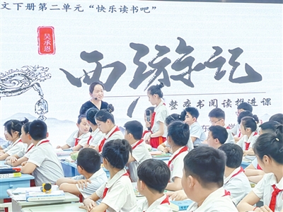 整本书阅读课程以“三阶推进”模式深化阅读体验。通过周周大教研活动,深入开展整本书教学研讨。低年级聚焦图画书,引导学生在猜读中发挥想象力,培养语言表达能力;中高年级围绕名著经典,通过激趣导读、读中推进、读后交流三种课型,帮助学生掌握阅读方法,实现有深度、有视角的阅读。