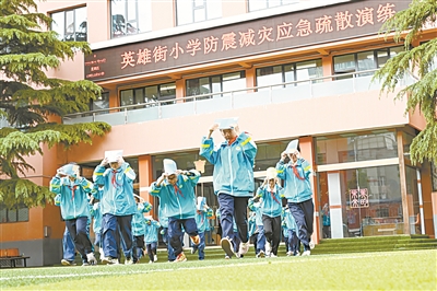 5月9日,潞州区英雄街小学的小学生在进行逃生演练。在第17个全国防灾减灾日来临之际,该校开展“防灾减灾 安全‘童’行”主题教育活动,指导学生在突发紧急情况下,增强防灾减灾意识,提升自我保护和生存能力。