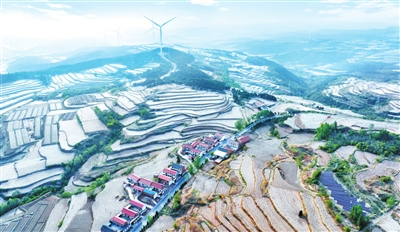 5月9日,壶关县东井岭乡北行头村,纵横交错的梯田宛如大地指纹,蔚为壮观。立夏时节过后,太行山区梯田层层叠叠,色彩斑斓。田地、山路、村庄等交相辉映,美不胜收,构成一幅和美乡村田园画卷。