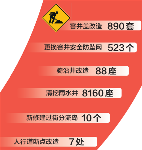 在街道上,窨井盖随处可见,它们的下方遍布着各类管线,是保障城市运行的“生命线”。然而,受季节交替、车辆长时间碾压等因素影响,井盖会出现不同程度的损坏,市市政管理中心对影响行车安全的890套窨井盖进行改造,更换窨井安全防坠网523个,改造“骑沿井”88座,清挖雨水井8160座,为市民出行提供了“双保险”,切实保障群众“脚下安全”。