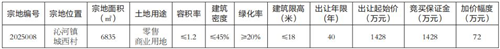 备注:1.该宗地地面存在的建(构)筑物已全部没收到位,无矛盾纠纷,无权属争议,地面已没收建(构)筑物及其他设施与土地一并出让,土地出让金中不含建筑资产价款,国有建设用地使用权竞得人须在签订国有建设用地使用权出让合同后5个工作日内另支付建(构)筑物资产价款4108.1694万元,逾期未全部支付的,出让方有权解除出让合同。