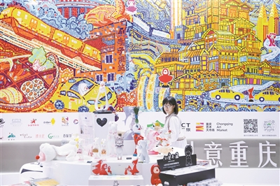 5月22日,观众在文博会重庆展台了解文创产品。