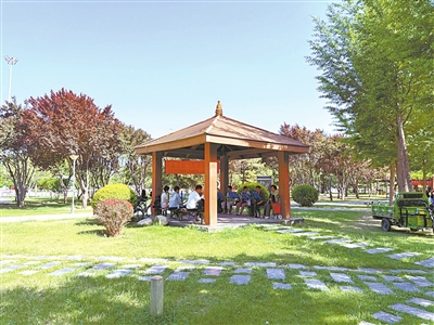 走进潞州区观音堂,时间仿佛倒流。千年古侧柏下,老人们坐在石凳上摇着蒲扇,收音机里放着上党梆子。长治现存多株千年古树,树冠庞大,树荫下常成为居民纳凉聚集地。加上近年来,城市推广小微绿地建设,在居民区或街道旁种植高大乔木(如国槐、银杏),搭配灌木、草地,形成“树荫+通风”的微型避暑点。居民李先生说:“我们从来不用空调,树荫底下比屋里凉快多了。”