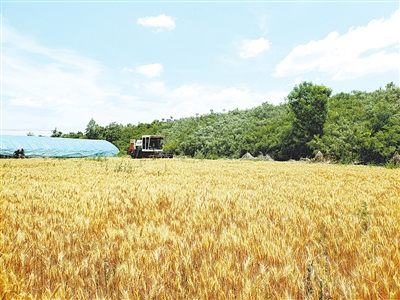 连日来,我市小麦陆续进入收获期,各地群众抢抓晴好天气收获小麦,确保颗粒归仓。图为6月16日,平顺县继小新庄园的麦田里,大型联合收割机在麦田里作业。 张永清 摄