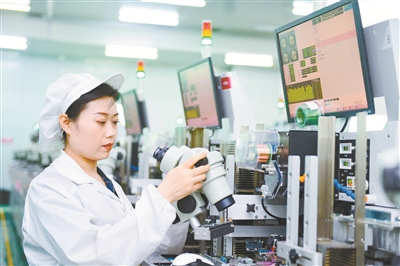 7月2日,山西高科华兴电子科技有限公司电子车间内,员工正在检测产品。近年来,该公司在技术研发上不断投入和创新,其生产的智慧互动地砖屏、透明屏、沉浸式LED创意显示屏等新型产品备受市场青睐。 本报记者 赵浩 摄