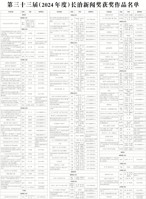第三十三届(2024 年度)长治新闻奖获奖作品名单