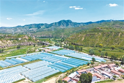 近年来,襄垣县立足本地土壤、气候、交通环境等优势,引导村民调整农业种植结构,大力发展大棚种植产业,有效带动当地百姓致富增收。图为7月10日,航拍下的襄垣县善福镇土合村,一排排温室大棚在阳光下整齐排列。