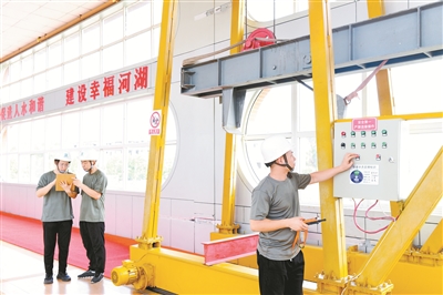 7月10日,山西漳泽水库管理有限公司工作人员在溢洪道启闭机机房仔细检查设备运转情况。进入汛期以来,该公司提前谋划,密切关注水位变化,对水库大坝84个渗流观测点进行电脑监测和人工比测,通过自动化采集和人工复核,确保数据准确可靠,全面掌握大坝运行状态,有力保障安全度汛。 本报记者 张国平 李波 摄