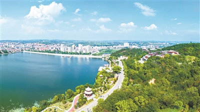 7月22日,俯瞰沁县县城水清岸绿、风光秀丽。近年来,该县深入推动农文旅深度融合,打造“一城山水半城湖”特色水城,吸引众多游客前来游玩避暑,乐享清凉。
