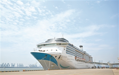 这是7月23日拍摄的靠泊在天津国际邮轮母港的“爱达·地中海”号国际邮轮。当日,“爱达·地中海”号国际邮轮搭载着约1600名旅客缓缓靠泊天津国际邮轮母港,随后搭载1500余名旅客离港驶向韩国济州、日本佐世保,开启六天五晚的邮轮游。