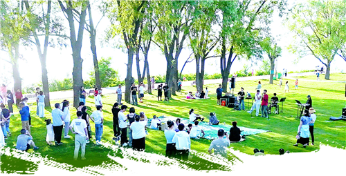 夜幕降临,滨湖湖畔草坪音乐会现场早已人头攒动。草坪上,观众们或坐或站,脸上洋溢着期待的笑容。舞台上,乐队激情演奏,动感的旋律瞬间点燃全场。台下的年轻人跟着节奏尽情摇摆,孩子们在一旁嬉笑玩耍,热闹非凡。不远处,音乐喷泉随着音乐的节奏高低起伏,水柱在灯光的映照下五彩斑斓,如梦如幻,引得观众阵阵惊呼。