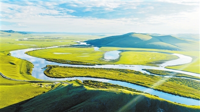 初秋时节,内蒙古呼伦贝尔市的额尔古纳湿地风景如画。河流湿地、滩涂、灌木相伴而生,清澈的河流蜿蜒贯穿其间,尽显自然生机与生态活力。