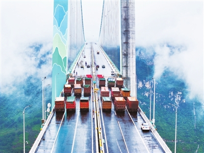 8月21日,在建世界第一高桥——贵州花江峡谷大桥正式启动荷载试验。2022年开工建设的花江峡谷大桥,跨越被誉为“地球裂缝”的花江大峡谷,是贵州省六枝至安龙高速公路的控制性工程。大桥为钢桁梁悬索桥,全长2890米,其中主桥跨径1420米,桥面至水面高度625米。