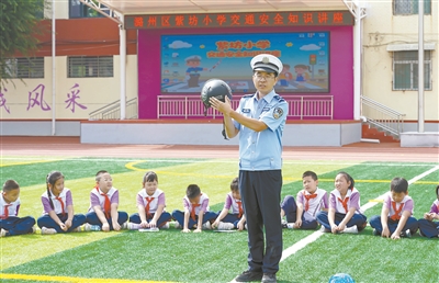 9月3日,市公安局交警支队三大队联合潞州区紫坊小学开展“交通安全进校园”宣传教育活动。活动中,民警通过为学生讲解交通标志标线、“一盔一带”安全守护行动、交通指挥手势实操演练等注意事项,普及交通安全知识,引导学生牢固树立交通安全意识,自觉养成安全出行、文明出行的好习惯。