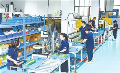 产线上,型号为ZS400060的蓝色磁环凭借金属磁粉芯“节能高效不发热”的独有特性,可使变频空调能耗直降50%。“目前,该产品主要配套美的空调,已占据全国两成的市场份额。”企业生产经理刘国防介绍。