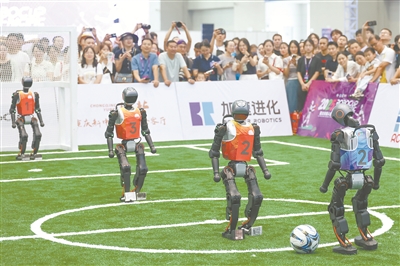9月5日,观众在2025世界智能产业博览会上观看人形机器人足球赛。