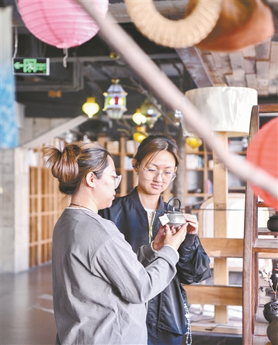 9月27日,市民在位于八一广场的新华书店非遗展厅内欣赏非遗作品。近年来,新华书店积极整合资源,聚焦地方文化特色,创新打造集文化展示与产品销售于一体的综合性非遗展厅,成为群众身边的品质文化生活“打卡地”。