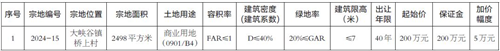 挂牌报价时间:2024-15号宗地:2025年10月20日9时至2025年10月31日16时。