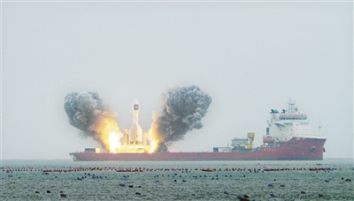 10月11日10时20分,我国太原卫星发射中心在山东海阳附近海域使用引力一号遥二运载火箭,将搭载的吉林一号宽幅02B07星、数天宇星01-02试验星顺利送入预定轨道,飞行试验任务获得圆满成功。 新华社发(郭金祺 摄)
