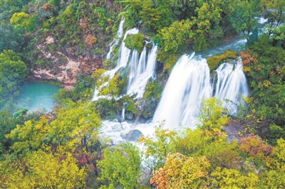 受持续降雨天气影响,壶关太行山大峡谷景区瀑布水量增大,气势磅礴、蔚为壮观。奔涌而下的流水声在山谷中回荡,与层林尽染的山峦相互映衬,构成一幅雄奇灵秀的太行秋景。