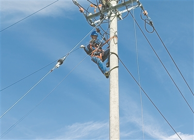 10月16日,国网武乡县供电公司工作人员在石北乡10kV824石北线神西支线进行线路检修作业,全力保障秋收期间供电线路安全运行。