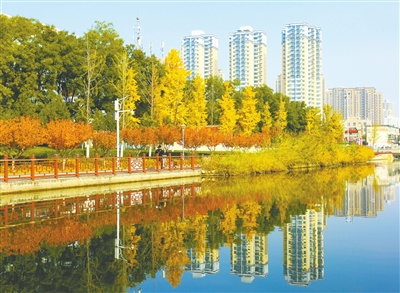 10月29日,“三河一渠”潞州区段五彩斑斓、秋色如画,市民正在散步。近年来,我市不断完善更新城市人居设施环境,持续推进“三河一渠”生态治理,着力打造一座有颜值、有温度、有内涵的现代化宜居城市。 本报记者 刘栋 摄