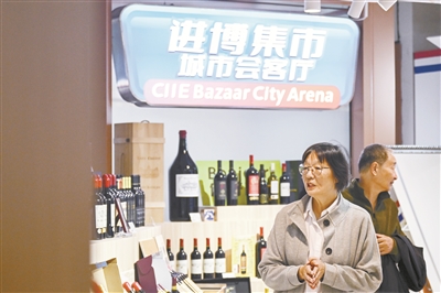 第八届中国国际进口博览会将于11月5日拉开帷幕,位于上海市南京东路的“进博集市城市会客厅”汇聚多种进博会同款好物,吸引不少市民游客前来购买。