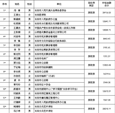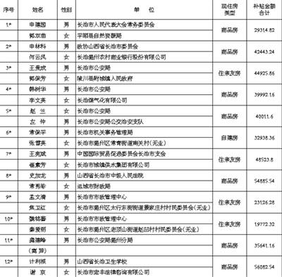注:前有*者为此次审批的补贴对象,无*者为配偶。