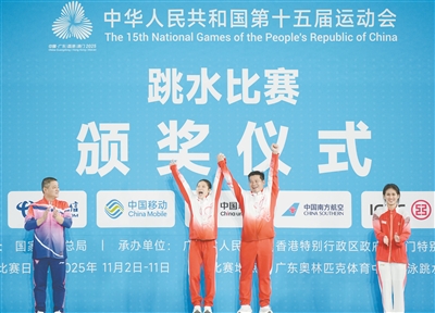 当日,在广州举行的第十五届全国运动会跳水女子个人全能决赛中,广东队选手王伟莹夺得冠军。